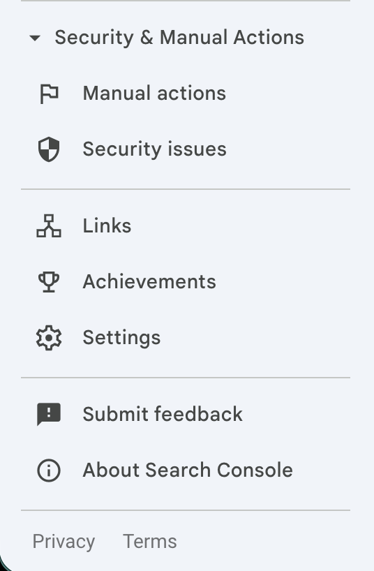 Sobald die Einrichtung abgeschlossen ist, steht Ihnen die Menüleiste mit allen Bereichen zur Verfügung: Leistung, URL Prüfung, Abdeckung, Sitemaps und weitere Funktionen.